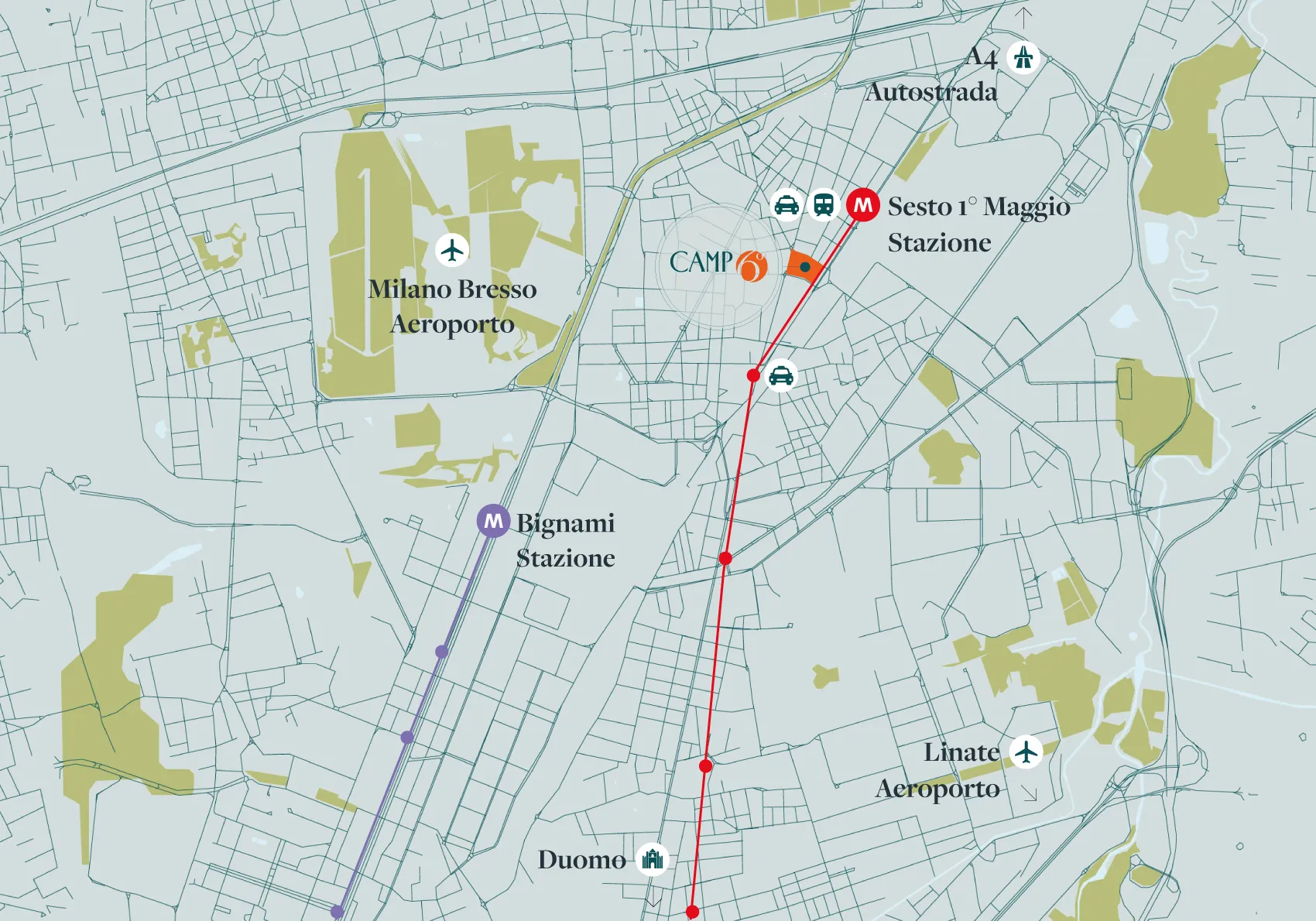 Camp 6° occupies a prime position within one of Milan’s most transformative regeneration projects in Sesto San Giovanni. A dynamic district offering seamless connectivity to Milan’s city centre, supported by robust infrastructure that appeals to innovative businesses and occupiers.
